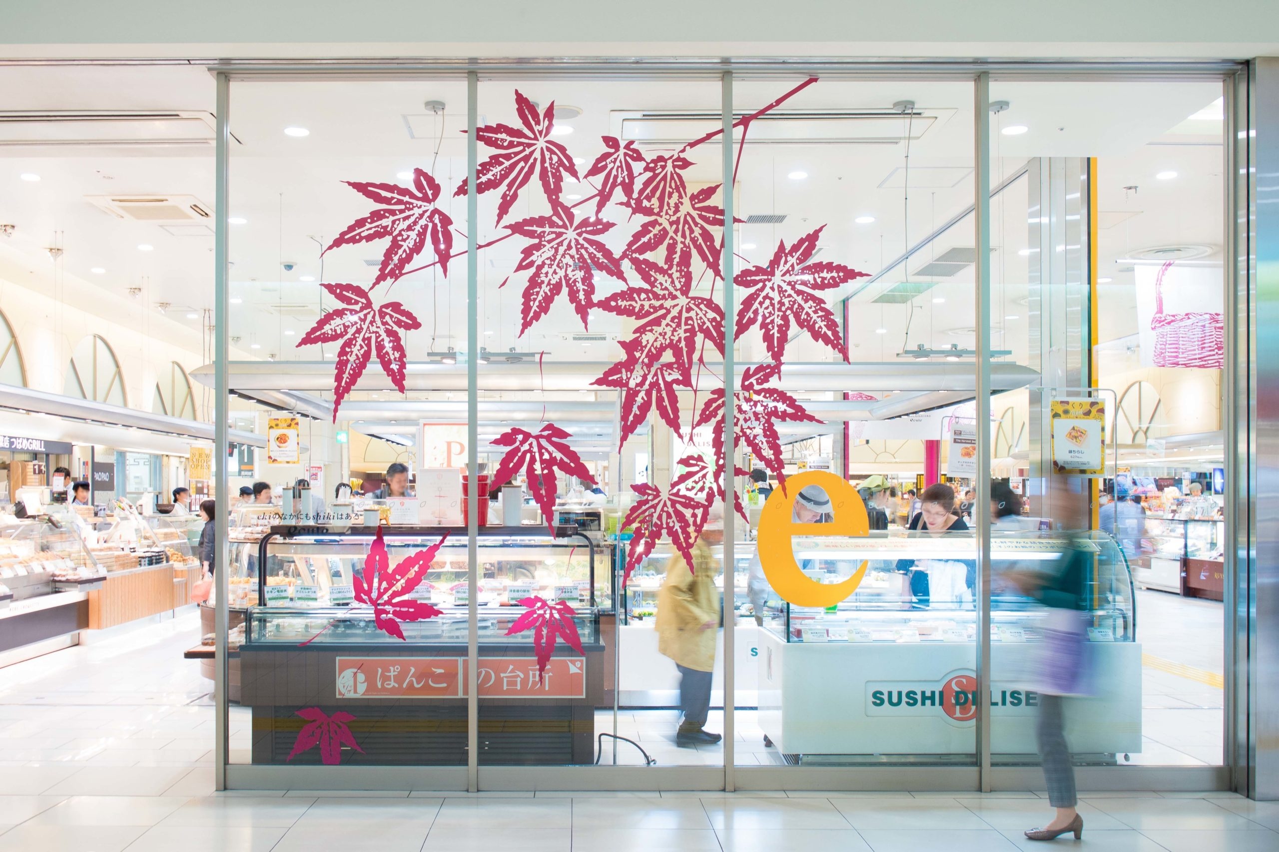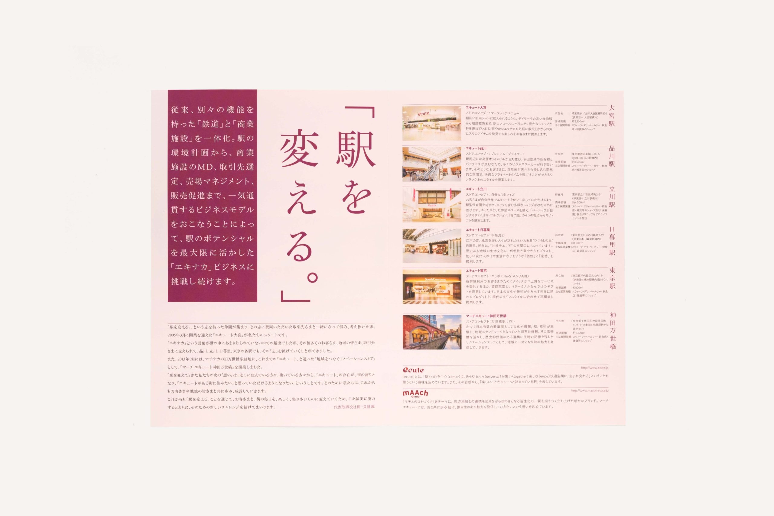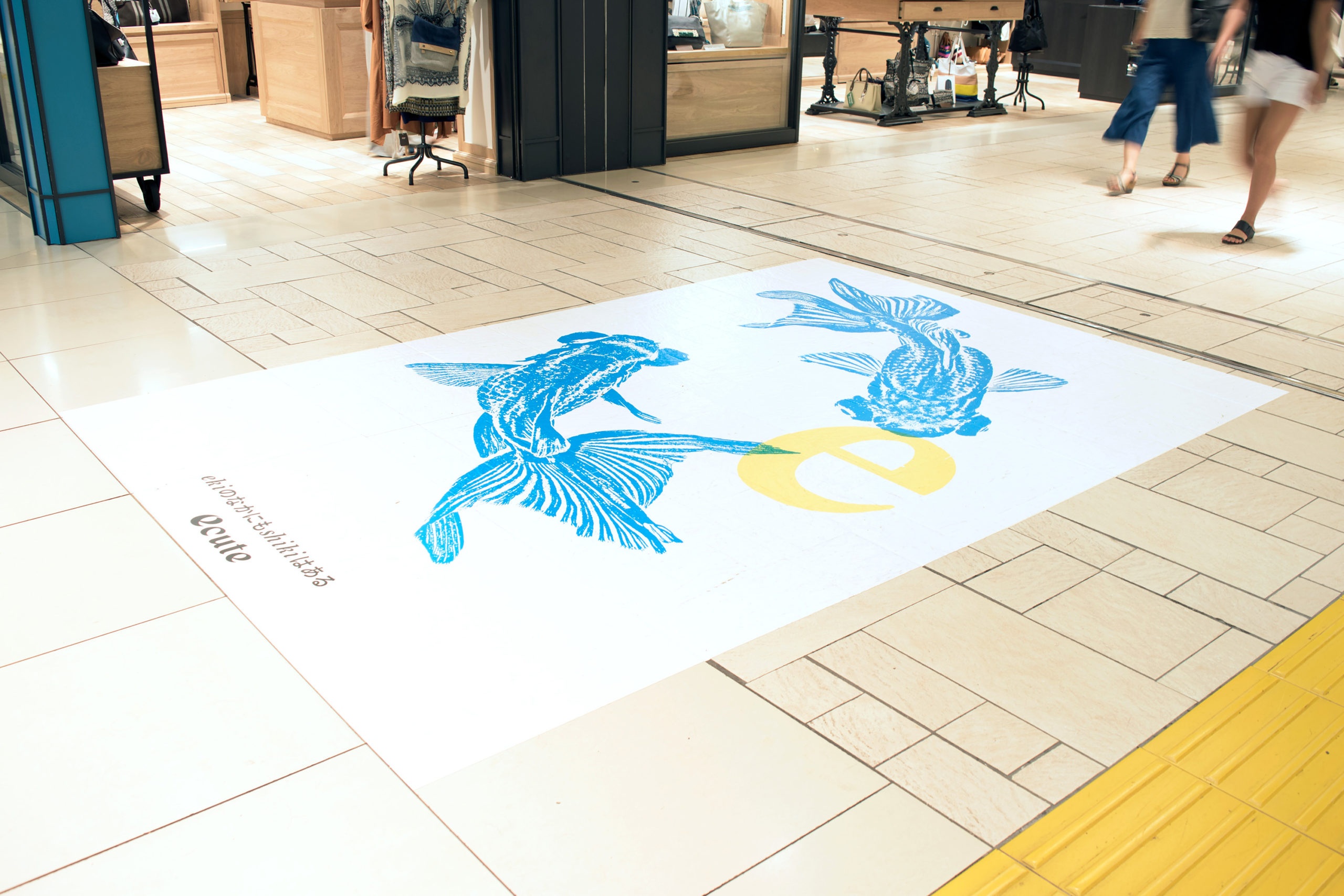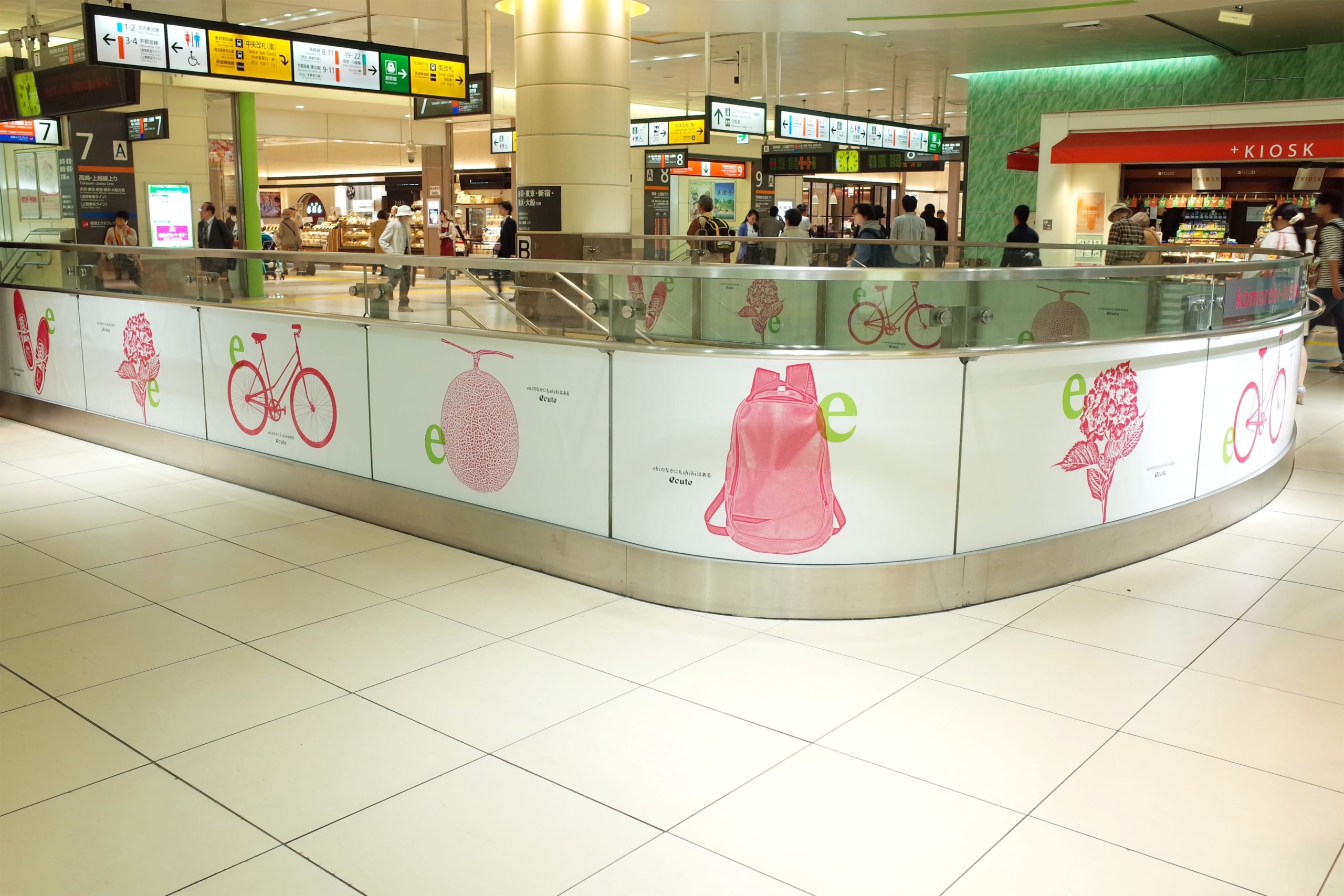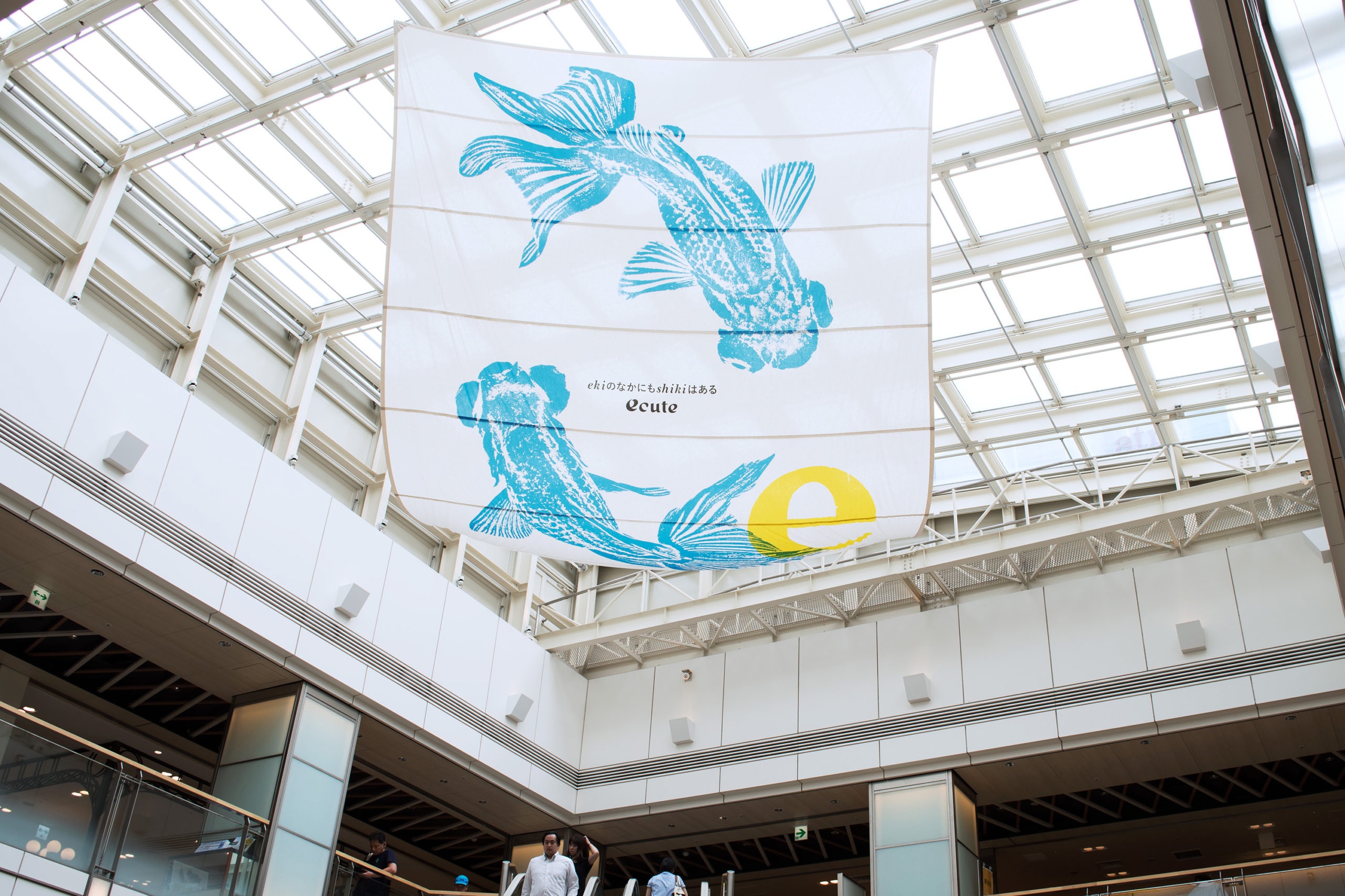 Seasonal branding for a commercial facility called ecute located in selected JR train stations was carried out focusing on designs that are simple but give a striking impression for venues with an information-rich nature. Centering the metal type ‘e’ as a symbol, and using the motifs of the four seasons designed in the form of fish-prints to create a seasonal ambience for busy commuters, a naïve picture letter-like communication was pursued.