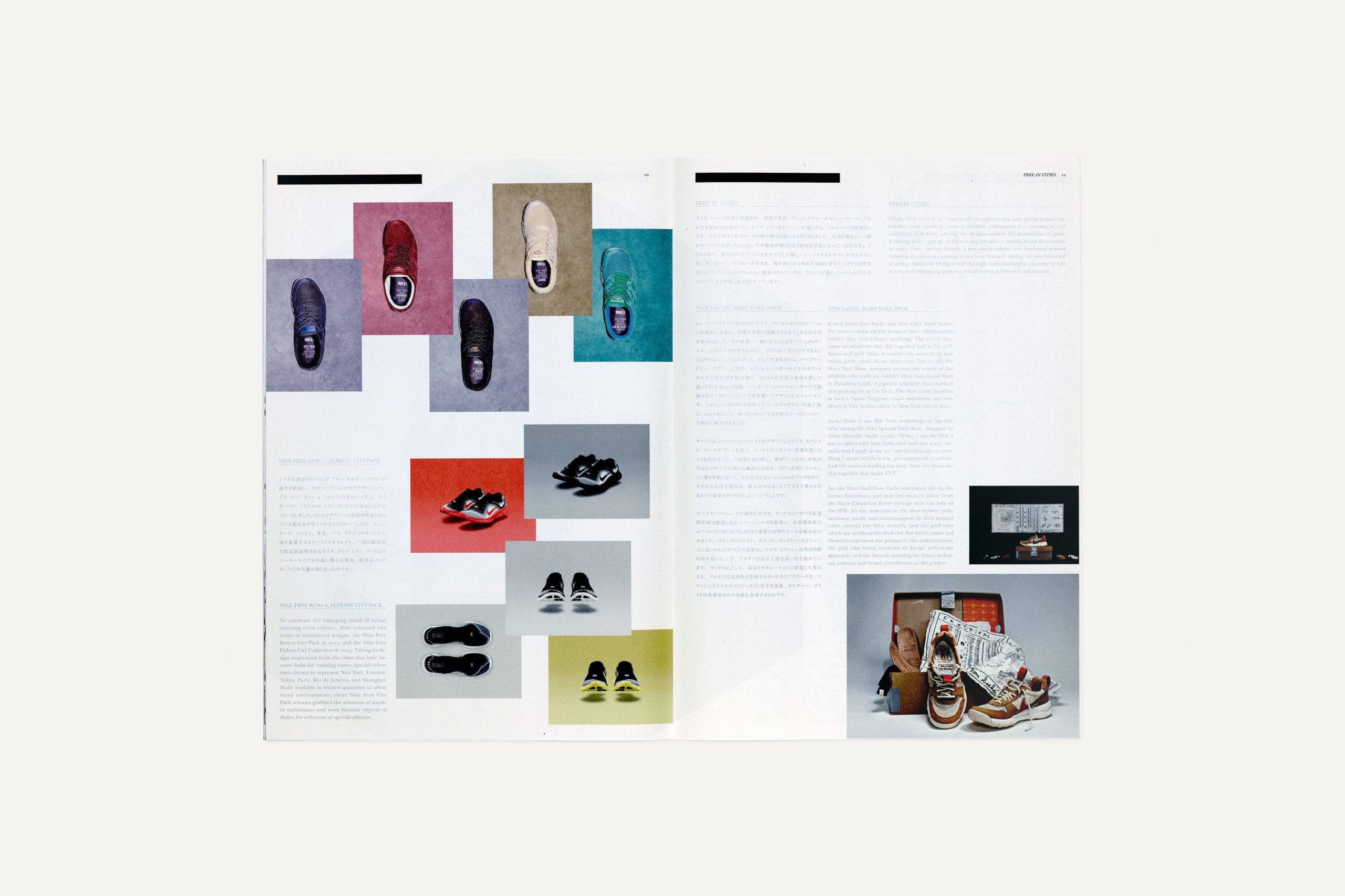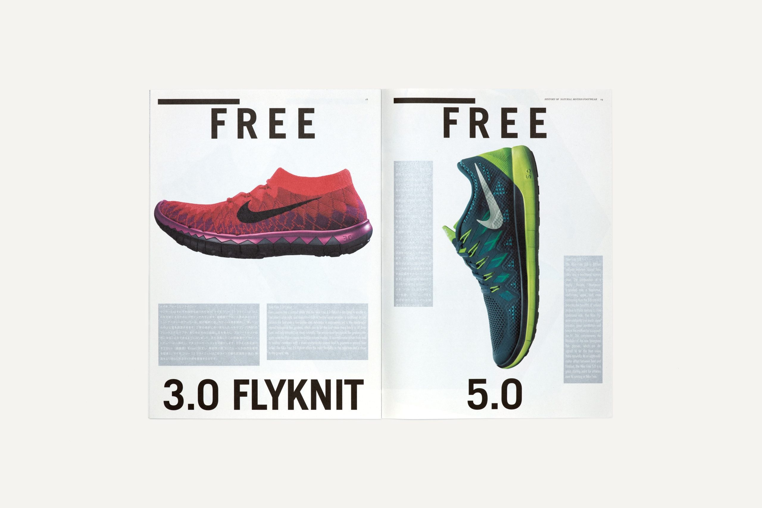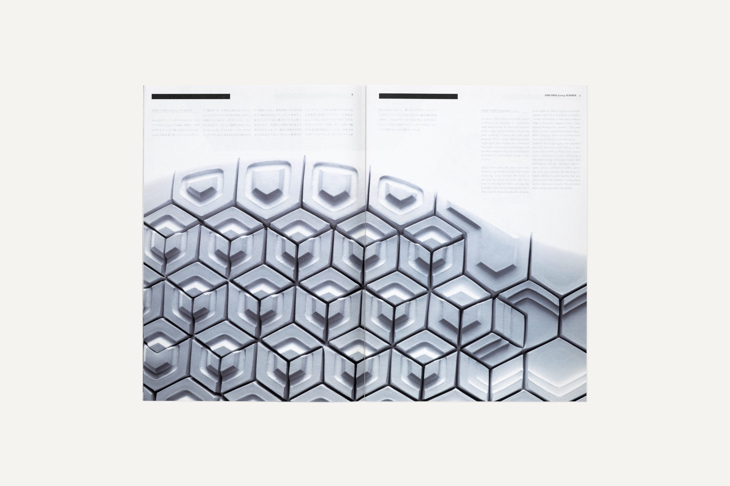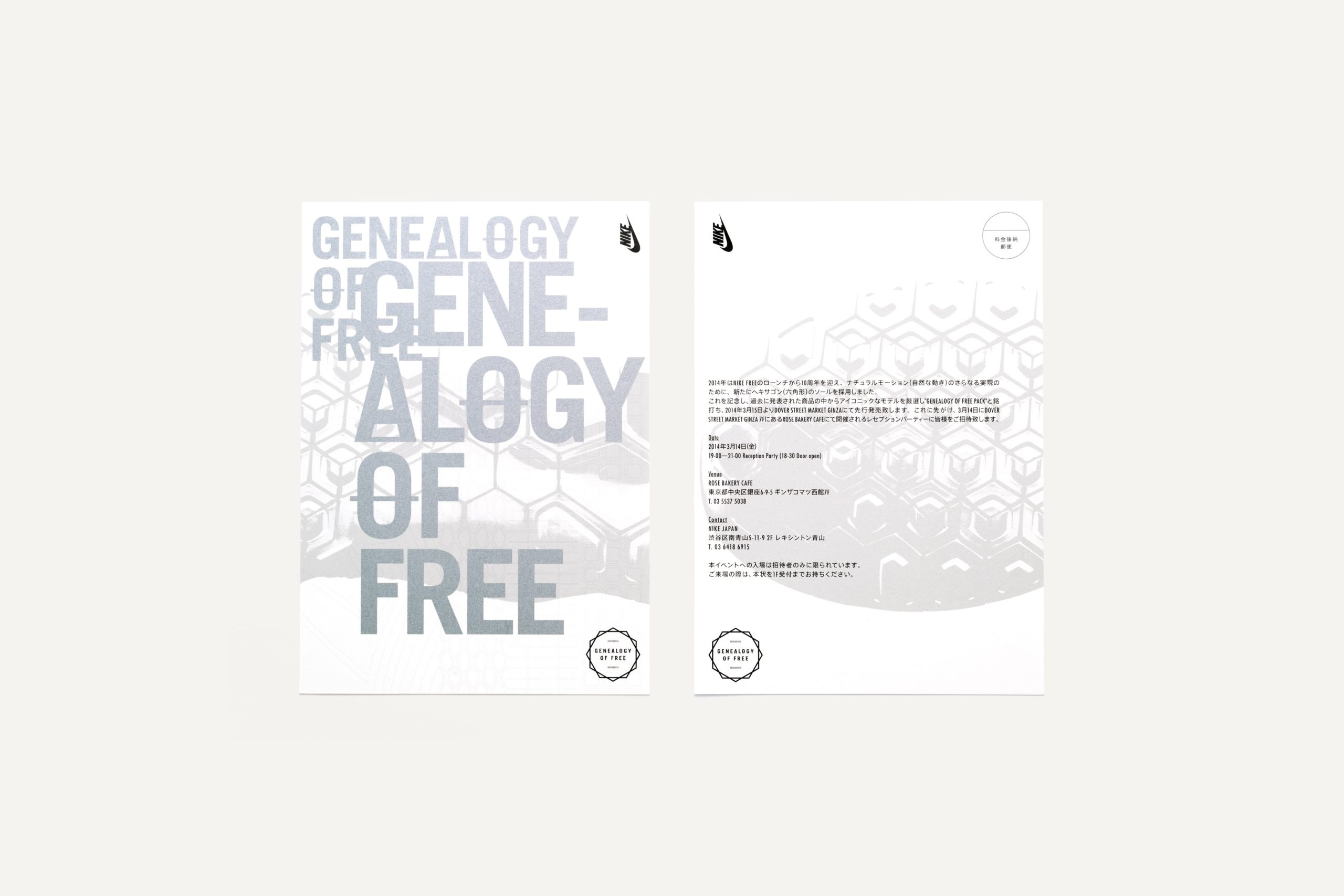 Art direction and design for the launch campaign of new and revival models to mark the 10th anniversary of the release of Nike Free. In order to promote this product line as part of high-fashion, DOVER STREET MARKET GINZA, a concept store of Comme des Garçons was selected for the venue. While likening the shoes to a piece of sculpture, the hexagonal form of the sole of the new model was used as a motif for the entire design scheme.