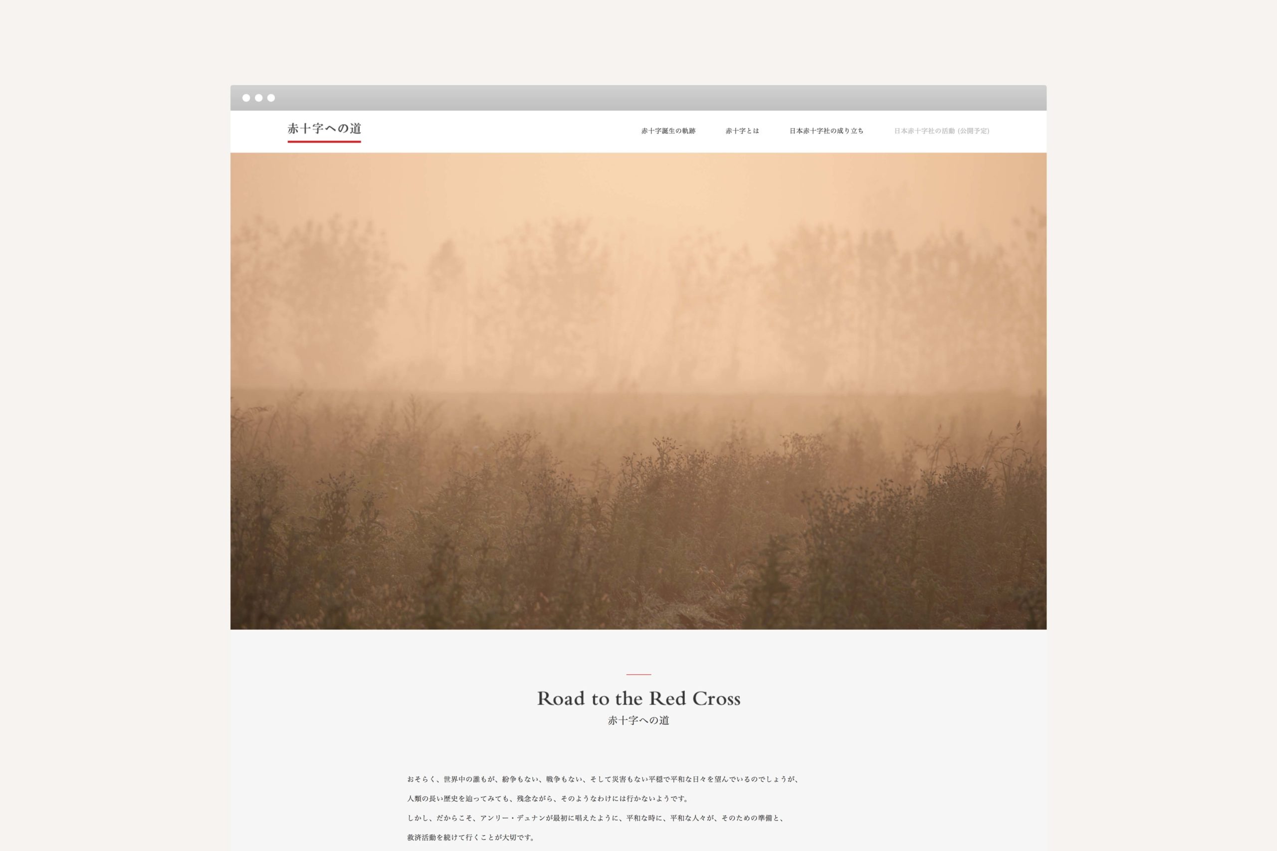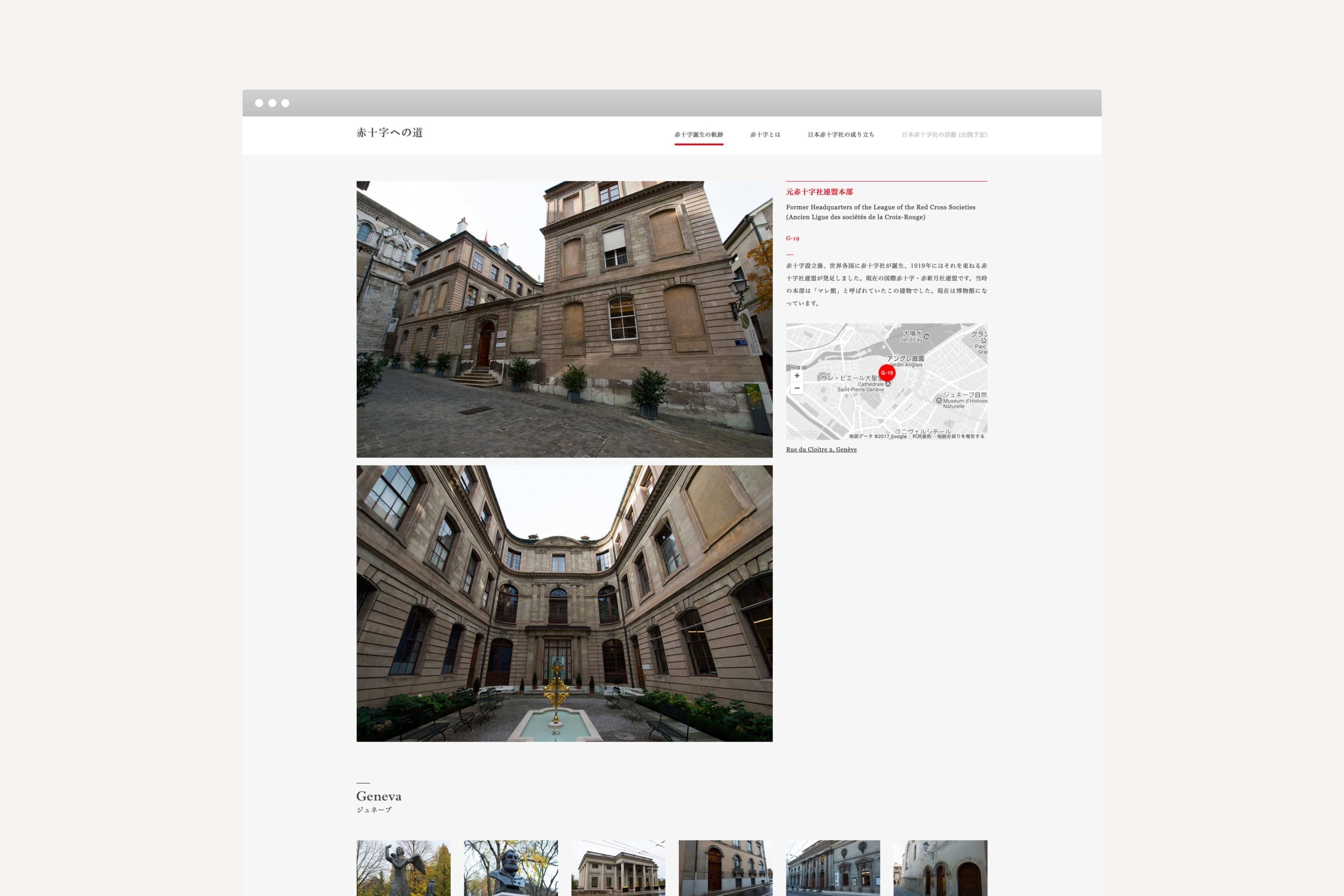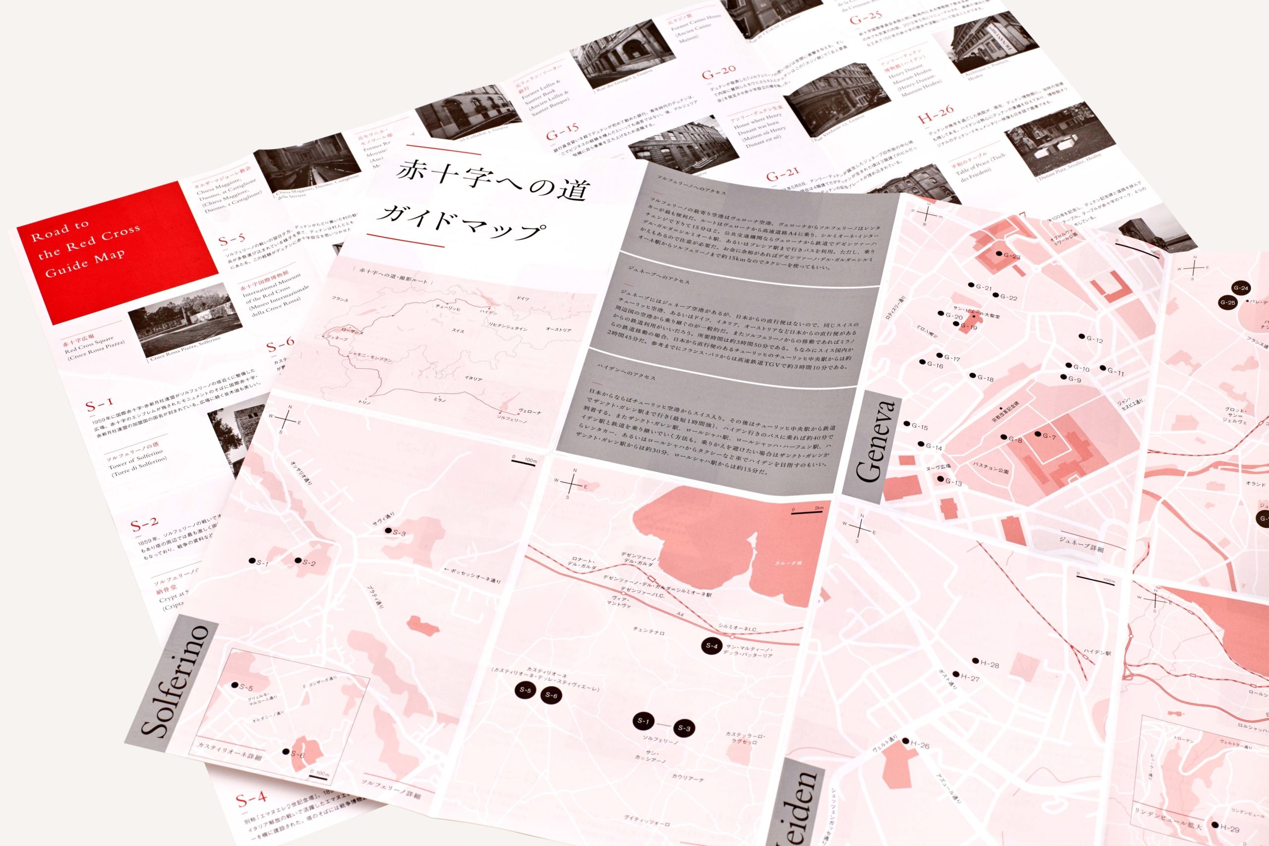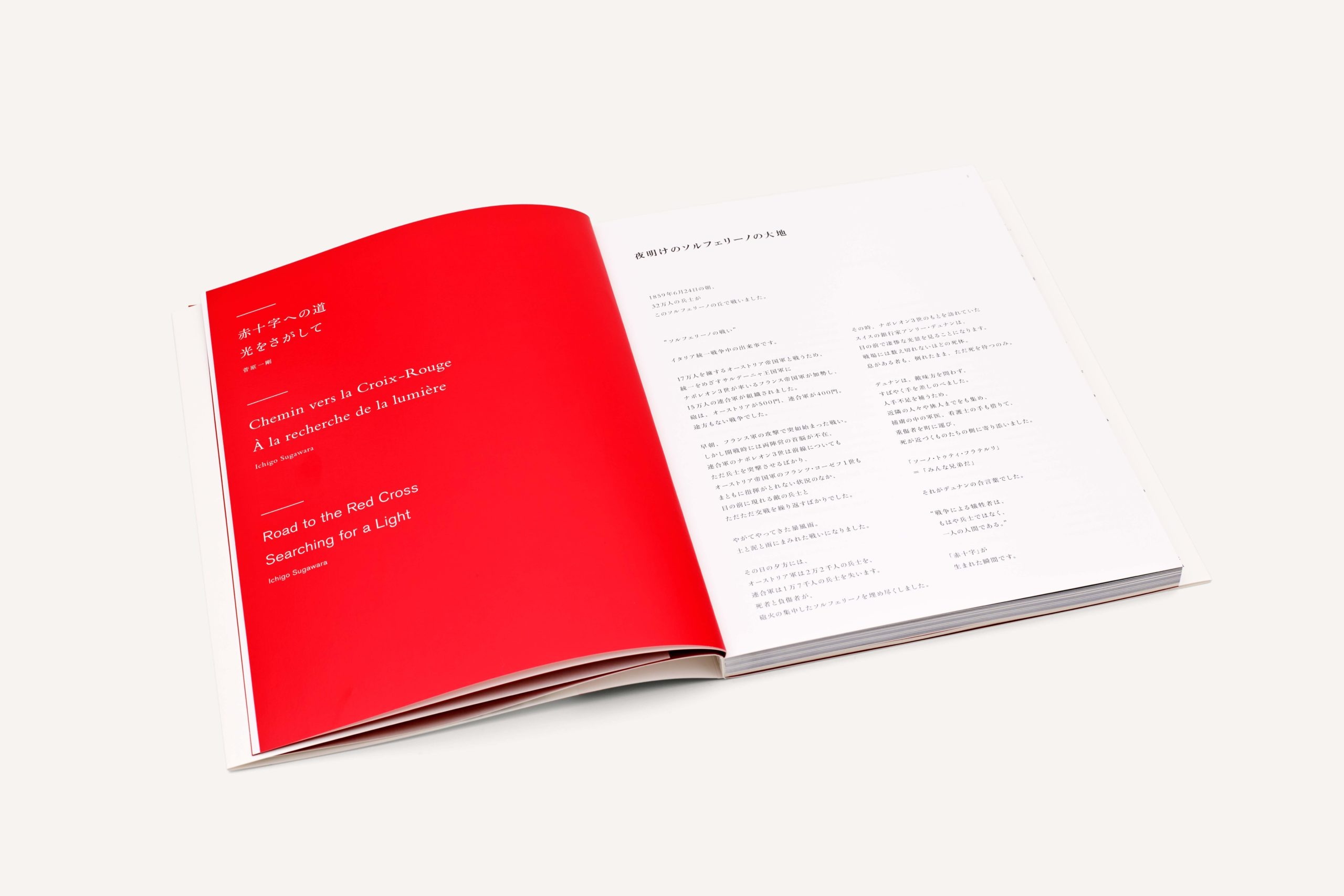 For the English, French, and Japanese trilingual publication, We created a historic narrative through photographs retracing the footsteps of Dunant. Essays and a map of the historic sites were included in the book, and later featured on a website and a mobile phone app. Upon the completion of the catalogue, the photographs were shown in exhibition.